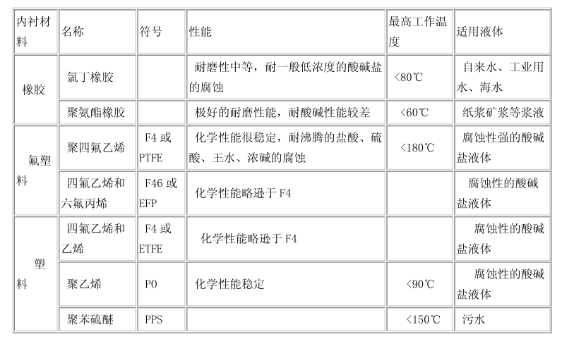 應(yīng)根據(jù)北側(cè)介質(zhì)的腐蝕性、磨損性和溫度來選擇內(nèi)襯材料。