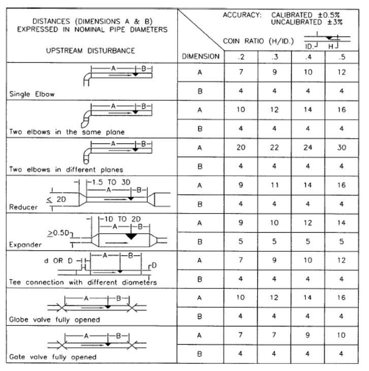 1.如果上、下游直管段只能滿足上表中所示的一半,測量精度值也相應(yīng)的應(yīng)該加1個百分點。