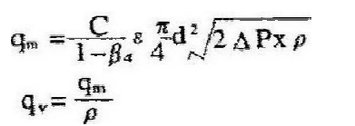 在已知有關(guān)參數(shù)的條件下, 根據(jù)流動(dòng)連續(xù)性原理和伯努利方程可以推導(dǎo)出差壓與流量之間的關(guān)系而求得流量。 其基本公式如下: