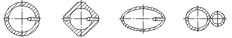 (a) 圓形 (b) 菱形 c) 橢圓形 (d) 雙管(前后)形